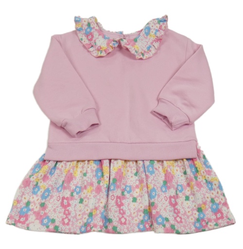 Svetloružové teplákovo/mačkané šaty s kvetmi a golierikom St. Bernard