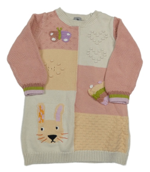 Ružovo-béžovo-smotanové pletené šaty s obrázkami Tu