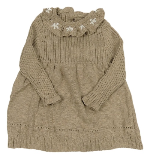 Hnedé svetrové rebrované šaty s golierikom