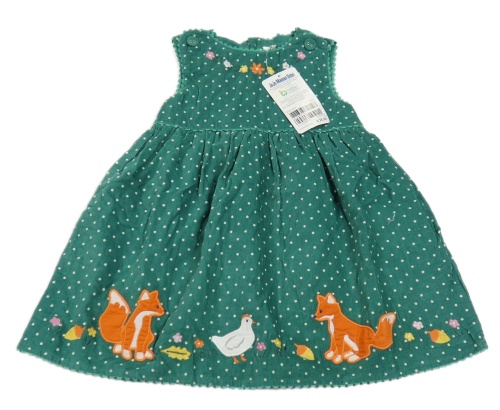 Nové - tmavozelené bodkovaná é menšestrové šaty s liškami a slepičkou Jojo Maman Bébé