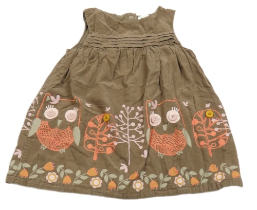 Hnedé menšestrové podšité šaty so sovami Vertbaudet
