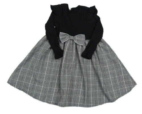 Sivo-bielo-čierne kockované vzorované rebrované šaty s mašlou a volánikmi