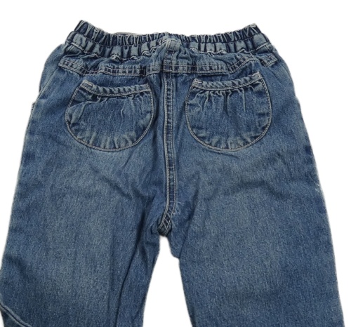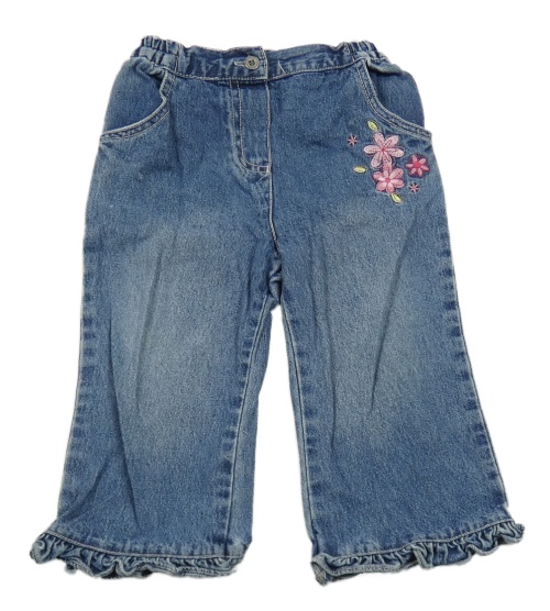 Tmavomodré široké rifle s kvetmi a volánikmi