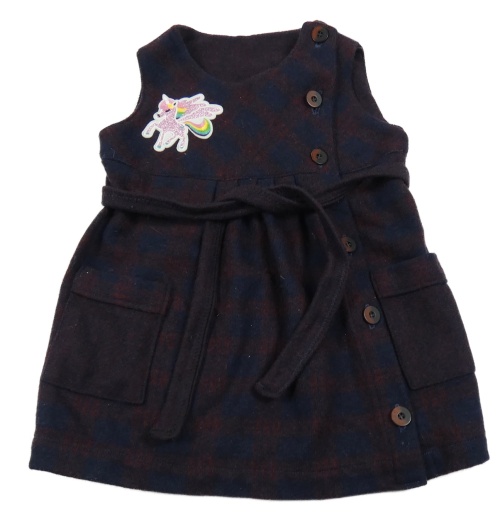 Tmavomodro/vínové kockované vlnené prepínaci šaty s jednorožcom a opaskom