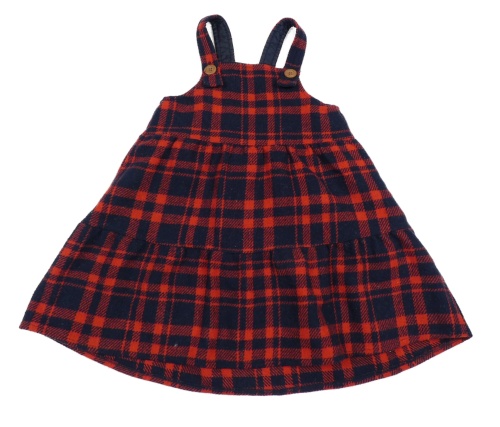 Tmavomodro-červené kockované vlnené na traké šaty Tu