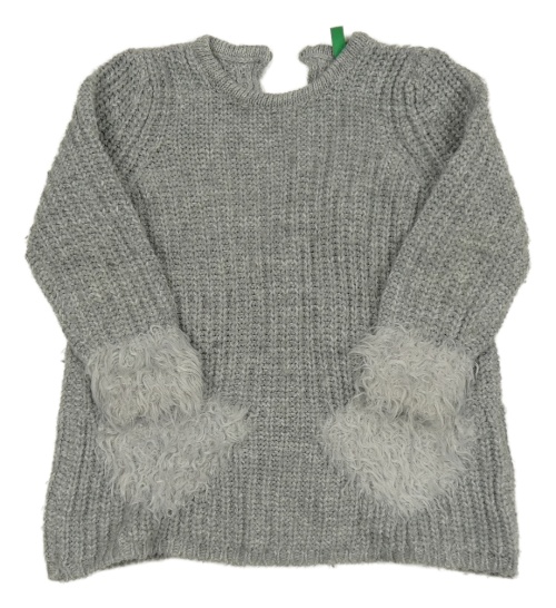 Sivé vlnené svetrové šaty s kožúškom Benetton
