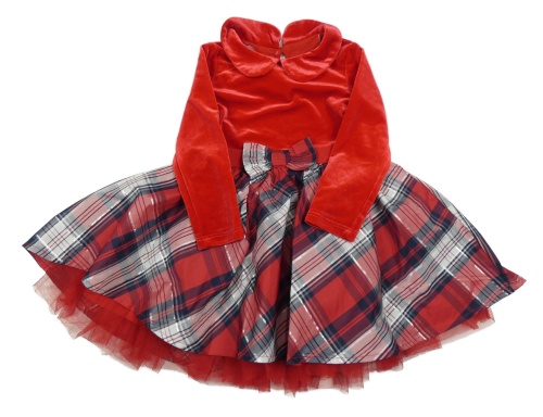 Červeno-kockované sametovo/silonové šaty s golierikom Dunnes
