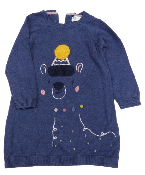 Tmavomodré svetrové šaty s medvedíkom M&S