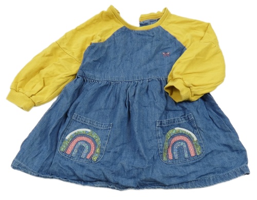 Modro-horčicové riflovo/teplákové šaty s duhami Next