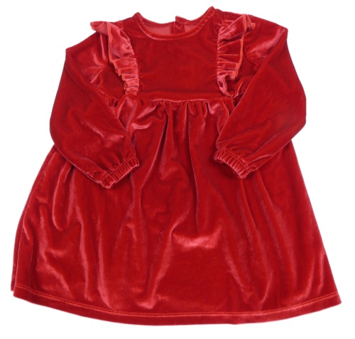 Červené lesklé zamatové šaty s volánikmi St. Bernard