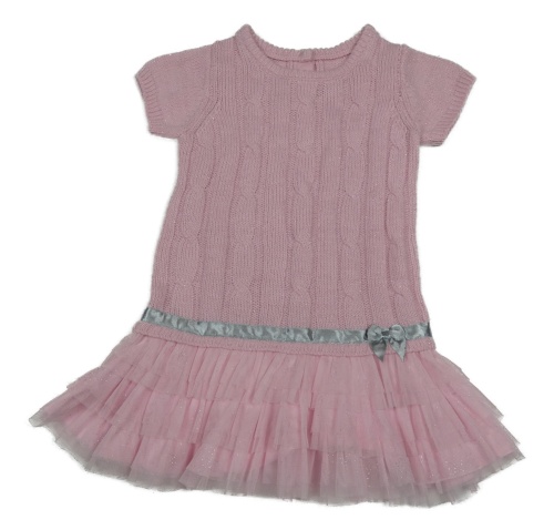 Svetloružové rebrované vzorované pletené šaty s mašlou a trblietkami a tylovymi volániky George