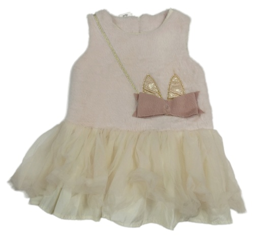 Svetloružová -smotanové kožešinovo/tylové šaty s mašlou a uškami