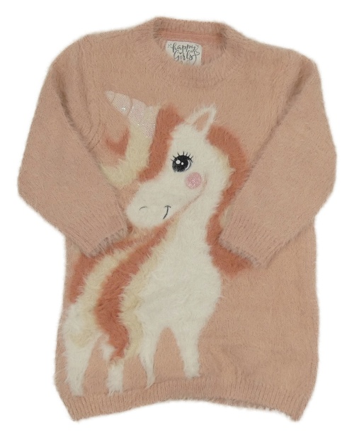 Svetloružové pleteno/chlupaté šaty s jednorožcom C&A