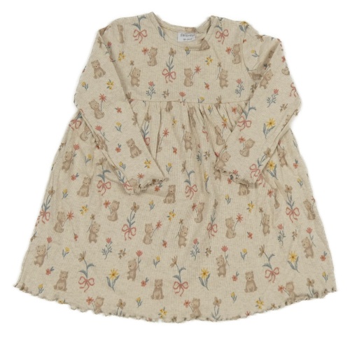 Svetlobéžové melírované rebrované šaty s medvedíkmi a kvietkami F&F