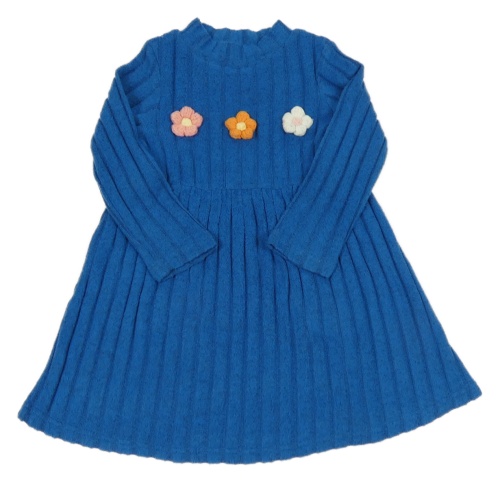 Modré melírované rebrované úpletové šaty s kvetinami