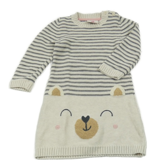 Světlebéžovo-tmavosivé pruhované svetrové šaty s medvěďom Topomini