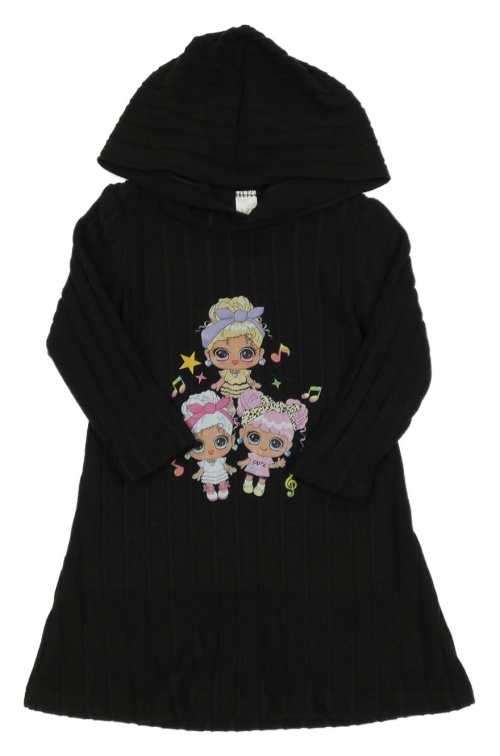 Čierne úpletové rebrované šaty s dievčatkom a kapucňou