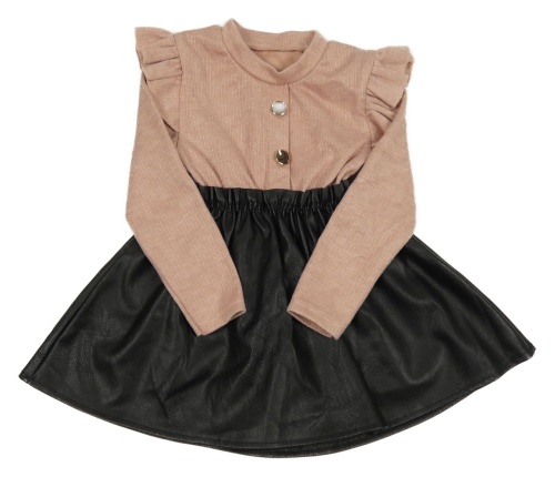 Starorůžovo-čierne úpletovo/koženkové šaty s volánikmi