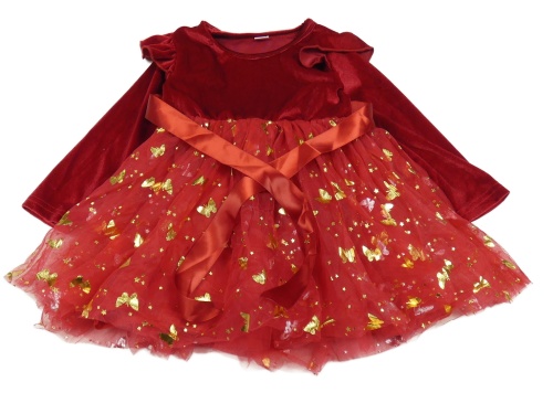 Vínové sametovo/tylové šaty s motýlikmi