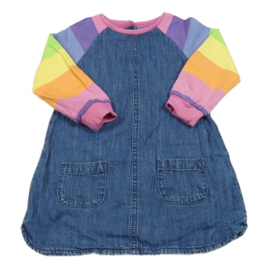 Modro-farebné riflovo/teplákové šaty s pruhy na rukávech Next