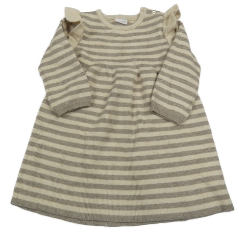Béžovo-hnedé pruhované rebrované svetrové šaty s volánikmi F&F