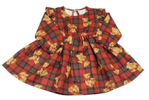 Vínovo-čierno-zelené kockované šaty s medveďmi a volánikmi Shein