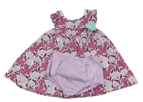 Nové - 2set - Bílo-vínovo-lila květované plátěné šaty + lila kalhotky na plenku Obaibi