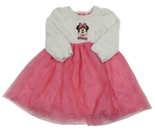 Béžovo-ružové rebrované zamatové šaty s Minnie a tylovou sukní Primark