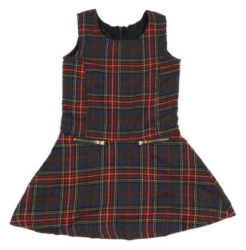 Tmavošedo-červeno-farebné kockované šaty so zipy