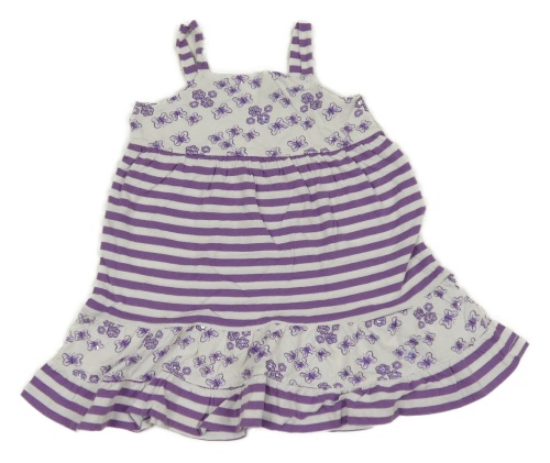 Fialovo-biele pruhované bavlnené šaty s motýly