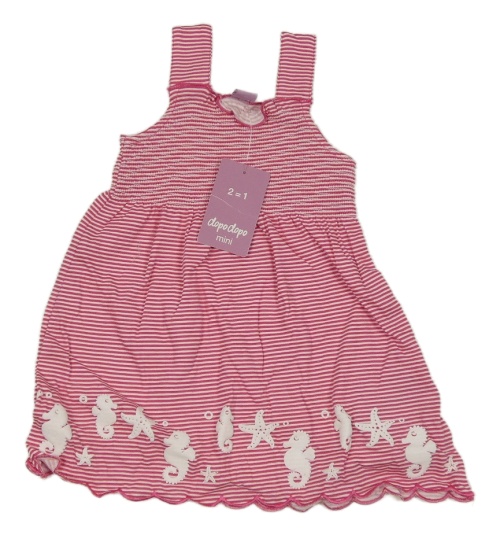 Nové - rubínovo-biele pruhované žabičkové šaty s obrázkami Dopodopo