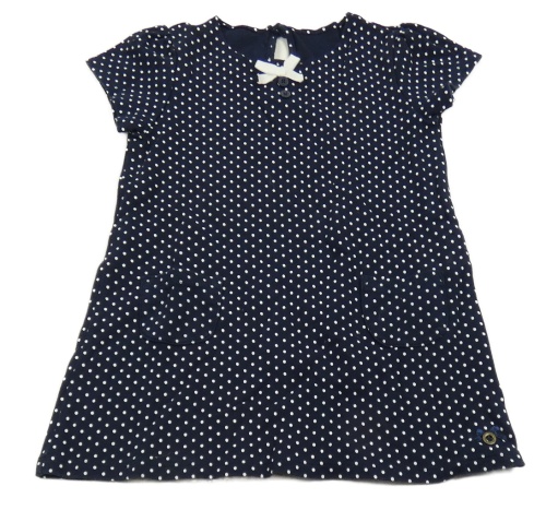 Tmavomodro-biele bodkovaná é šaty s mašlou