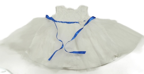 Biele spoločenské šifónové čipkové šaty s modrou stuhou LC Waikiki