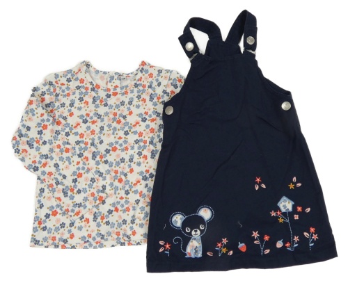 2set - Tmavomodré plátenné na traké šaty s myškou + biele kvetované tričko