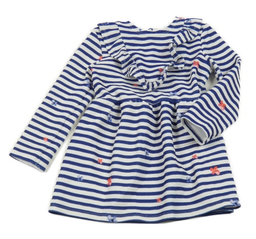 Námořnicky modro-biele pruhované šaty s kvetmi St. Bernard