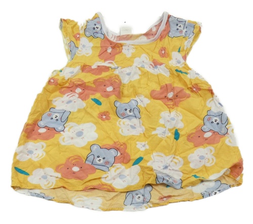Okrové ľahké šaty s medvedíkmi a kvetmi