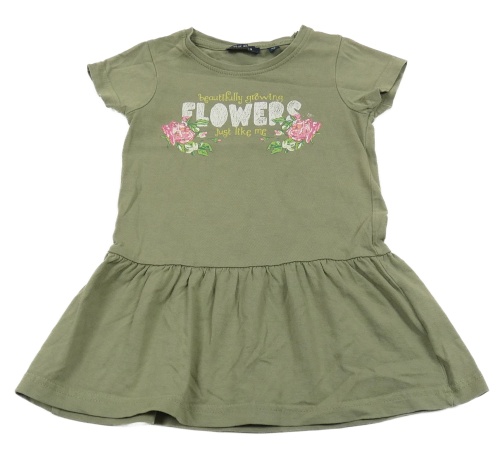 Khaki bavlnené šaty s růžemi a nápisom Blue Seven