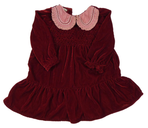 Tmavočervené zamatové šaty so staroružovým golierikom Monsoon