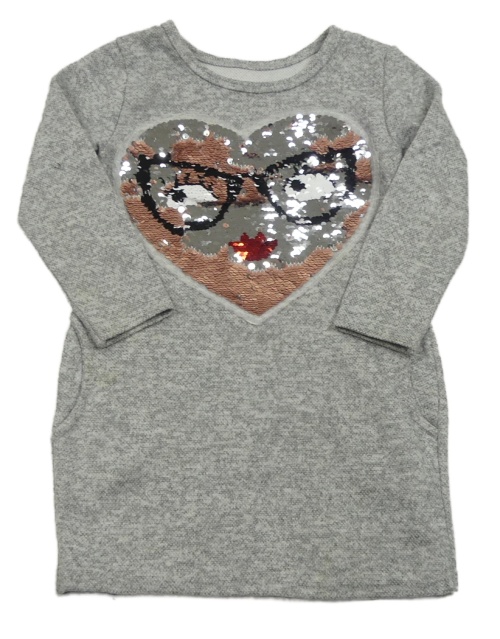 Sivé melírované úpletové šaty so srdcem z flitrů