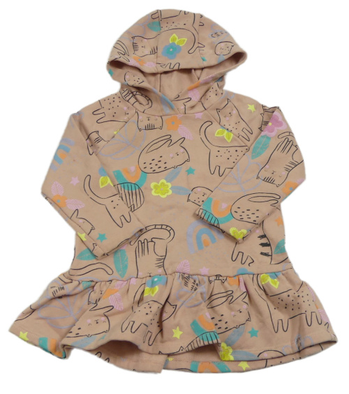 Ružové teplákové šaty s kvetmi a kočičkami a kapucňou Nutmeg