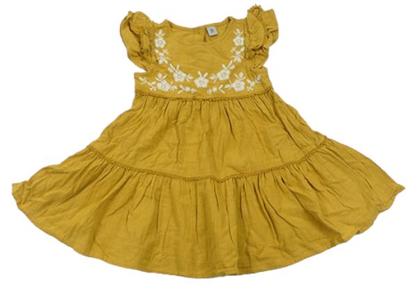 Okrové mušelínové šaty s kvetmi a volánikmi Tu