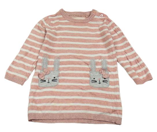 Starorůžovo-biele pruhované svetrové šaty s vreckami s králikmi Yd.