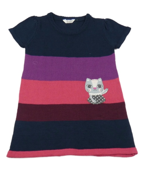 Tmavomodro/fialovo-jahodovo-tmavovínové pletené šaty s mačičkou