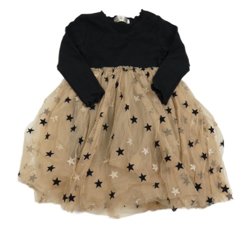 Čierno-hnedé šaty s tylovou třpytivou sukní s hviezdami