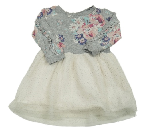 Sivo-smotanové teplákovo/tylové šaty s kvetmi a trblietkami GAP