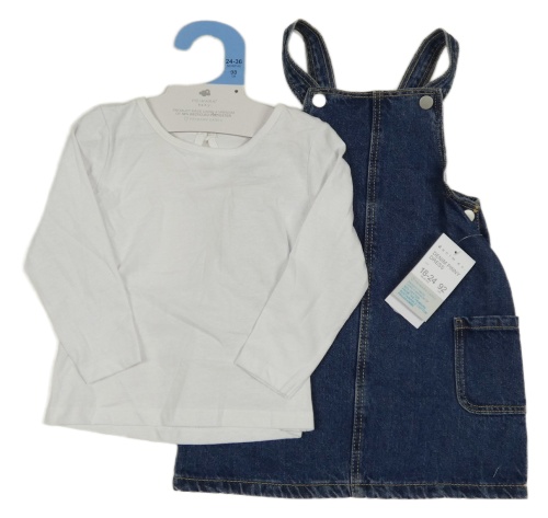 Nové - 2set - Tmavomodrá rifľová na traká sukně + biele tričko Primark