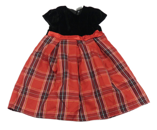 Čierne zamatové šaty s červenou kostkovanou sukní