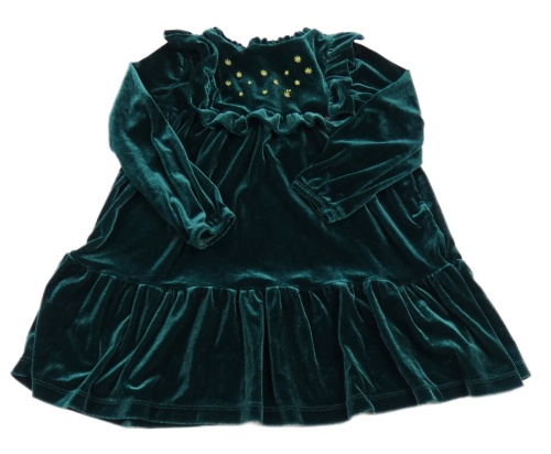 Tmavozelené zamatové šaty s volánem a výšivkami John Lewis