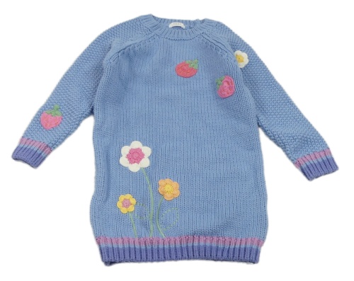 Modré svetrové šaty s kvetmi a jahůdkami Next