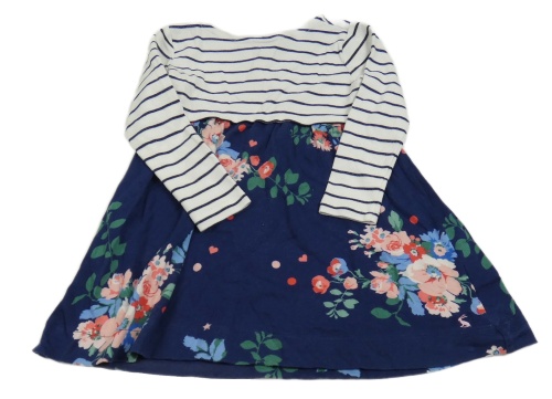 Tmavomodro-biele pruhované šaty s květovanou sukní Joules